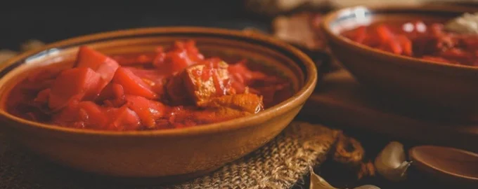 Το πιάτο έχει πλούσια γεύση και χαρακτηριστικό ροζ-κόκκινο χρώμα. Η Σπούντρα είναι ένα παραδοσιακό ουκρανικό πιάτο από παντζάρια και χοιρινό κρέας, που