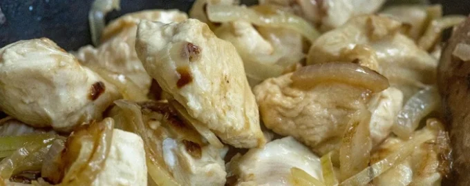 Το κοτόπουλο μαγειρεύεται σε άφθονο κρεμμύδι, το οποίο θα δώσει στο πιάτο ζουμερότητα και γεύση