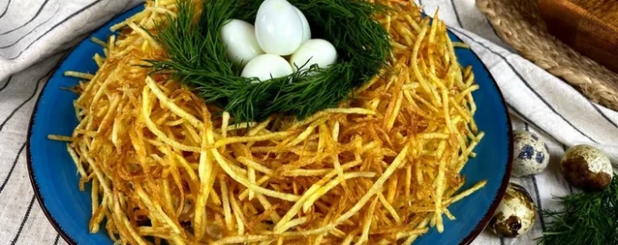 Η πρωτότυπη σαλάτα “Φωλιά της πέρδικας” ή “Φωλιά του ορτυκιού” είναι μια ιδανική παραλλαγή του τι πρέπει να προετοιμάσετε για τις διακοπές. Η συνταγή είναι απλή και διαθέσιμη σε όλους. Και το αποτέλεσμα είναι τόσο νόστιμο που κανείς δεν θα αρνηθεί να το ξαναγεμίσει.
