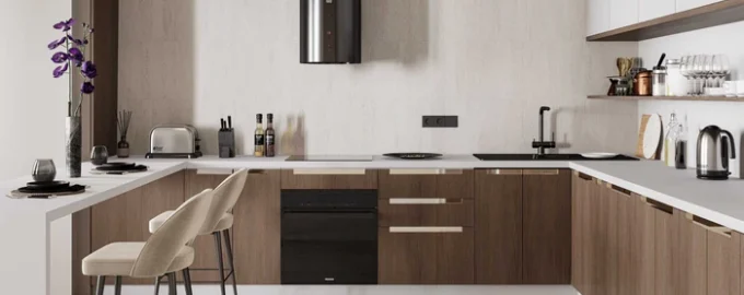 Η λευκή δρυς παραμένει το αγαπημένο είδος για ντουλάπια κουζίνας. Τη δεύτερη θέση καταλαμβάνει η καρυδιά. Το στυλ των ντουλαπιών είναι κυρίως μοντέρνο, με επίπεδες μετώπες, ενώ η τάση για ψηλά ντουλάπια μέχρι το ταβάνι και ενσωματωμένες συσκευές τονίζει την επιθυμία για συντομία και αισθητική αρμονία.