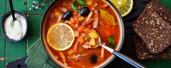 - Το προκατασκευασμένο Solyanka είναι έτοιμο – χρειάζεται μόνο να αφαιρεθεί από τη φωτιά και να παραμείνει για 10-20 λεπτά. Μπορεί να σερβιριστεί με άνηθο και ξινή κρέμα.