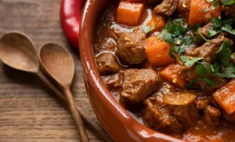 Το πιάτο έχει πλούσια γεύση και χαρακτηριστικό ροζ-κόκκινο χρώμα.